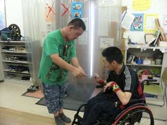 今月のおやつ作りでは、ふらわあは6月3日フルーツゼリー、ブーケは6月27日チョコチップマフィンを作成しました。ふらわあでは、みかんジュースやみかんの缶詰を使用したフルーツゼリーの作成です!みんなでジュースをボールに入れて、缶詰・ゼラチンを加えて必死に混ぜ混ぜ!徐々に固まるゼリーにみんな笑顔になっていました。食べてみるととっても美味しいフルーツゼリーの完成です。口の中にみかんの果汁と風味が広がり、大満足です。ブーケでは、チョコチップマフィンです!4月にふらわあが作成していたので美味しさに負けないように、ブーケのみんなはやる気満々です。小麦粉や砂糖を交代しながらかき混ぜることで、みんなの手は少し疲れた様子でしたが、焼きあがった匂いを嗅ぐと、顔が輝いていました。出来立ては美味しくとてもいいチョコチップマフィンが出来上がりました!