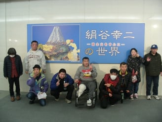4月4日 「桧山文(ひやまあや)作品展」に行ってきました。多くの絵が展示されており、利用者さんの中には1枚の絵を見つめる利用者さんや会場内を満遍なくぐるぐると回られる利用者さんの楽しみ方はそれぞれでしたが、皆様ゆっくりと楽しむことができました。 会場の中で「糸」という曲が「Mr.Children」さんによってカバーされた歌が流れており、絵以外にも歌で作品展を楽しみました。帰りの車内では「糸」の大合唱で、帰りの車内まで笑顔で楽しかったです。
