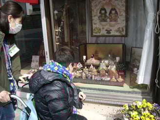 3月3日はあかりをつけましょ~ぼんぼりに♪ ふらわあ・ブーケともに今月は府中市の天領上下ひな祭りに行ってきました! 商店街を歩くと、明治時代からの年季の入ったひな人形、地域のこどもたちが手作りしたひな人形など、ひとつひとつ個性のあるものばかり。「この人の顔、いいねえ!」、「服が華やかだな」など、みんないいコメントをたくさんしながら展示されたひな壇を見ていました。ひな祭りは、「災難などから身を守って、新しい季節の良い幕開けを願うため」という起源があります。みんなとひな人形を見て、4月からも楽しく過ごせるようなスタートができるでしょう!