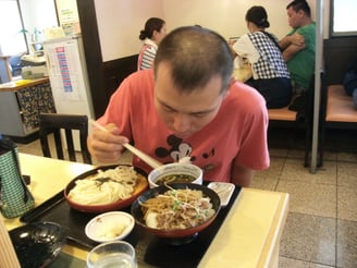 ブーケのランチは「あまんじゃく」ラーメン屋さんに行きました。ボリューミーな定食をぺろりと完食し、ラーメンと唐揚げのセットなどメニューも豊富な定食をみんなでおいしく食べました。たれの味が染みた唐揚げが絶品でした。暑さも吹っ飛ばすラーメンと唐揚げの味は忘れられませんね!