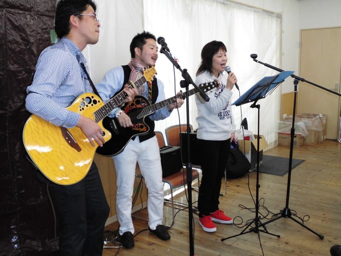 11月28日にジョイジョイワーク引野で東林館高校コンサートを行いました。大変好評だった夏のコンサートに引き続き今回で2回目を迎えました。東林館高校の喜田先生率いる二人組デュオの「ぺっとぼとらーず」は序盤から今年の流行語大賞最有力候補(?)の「あったかいんだから」で皆の心をぐっと掴み、その後はバラードを中心にノンストップで11曲披露してくれました。コンサート終盤の「ぺっとぼとらーずwith施設長」の「瀬戸の花嫁」の歌声には皆が聞きほれてしまうほどでした。最後には前回のコンサートの時にリクエストしていた「勇気100%」を皆で大合唱をして、大盛況の内に幕を閉じました。