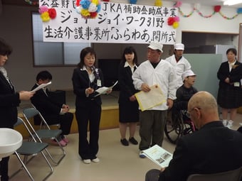 四名の利用者と、五名の職員でスタートした生活介護で、今までやりたくても出来なかった事を、いっぱいしています。なので毎日感動の連続です。生活介護は、職員も利用者さんも一緒に楽しめるすばらしい事業だと思います。今の利用者さんの一番人気は“カラオケ”です。かと言って、歌ってばかりではありませんので、ご安心下さい。しっかり作業もやってます。