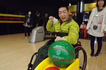 2年ぶりのボーリング大会、まだかまだかとこの日を楽しみにしていた利用者さん。4人1グループでの団体戦にみんな真剣に投球していました。車いすの方も装具をしている方も、バリアフリーのボーリング場で心もバリアフリーに楽しまれました。