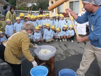 恒例の餅つき-幼稚園児招き