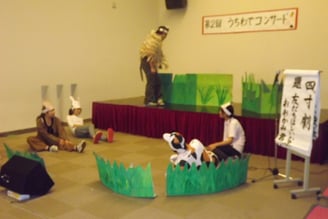 「うちわ」は、団扇ではなく内輪。アンダンテの職員(一部利用者さんも参加)が一生懸命練習した、歌、バンド演奏、ダンス、コント、劇を披露しました。昔取った杵柄、とはよく言ったもので、押し入れにしまい込んでいた楽器を何年か振りに取り出し、日々練習に励みました。こんなに芸達者なんだ、といつもと違う職員さんに利用者さんもビックリ!一緒に手拍子したり踊ったり笑ったりと喜んでいただきました。練習は大変だったのですが、こんなに利用者さんが喜んでくださって、来年も頑張りましょうね。