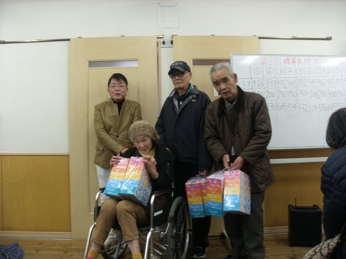 2月23日の土曜日に「第3回 理事長杯ボーリング大会」が行われました。場所はパークレーン。13グループに分かれて行いました。「ストライク!」「惜しい!あと2本!」という声があちこちから聞こえてきました。ストライクを決めた時や自己最高の点数を出した時の皆さんの顔がとても輝いていました。1ゲームたっぷり楽しみ、ジョイに帰ってお昼ご飯を食べたあとはお待ちかねの表彰式です。不公平にならないよう、くじ引きをして点数を加算、もしくはマイナスします。チームの持ち点とくじ引きの点数の結果、優勝したのは1グループの3名でした。3名には豪華景品のプレゼントがありました。そして個人優勝したМさんには、理事長からハグのプレゼントがありました。景品ゲットできなかったチームも来年はリベンジ頑張ってください!点数はどうであれ、皆さんの楽しむ顔を見ることができ、職員一同大満足のボーリング大会となりました。