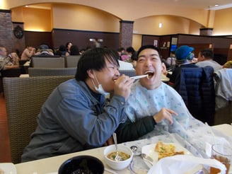 2020年となり、新しい年を無事迎えることができました。新年会ではワールドビッフェに行ってみんなで食事!美味しい料理を思う存分食べて、満腹しあわせいっぱい!からあげやカレーなどいろんな料理を食べている利用者様方、とてもいい表情でした。