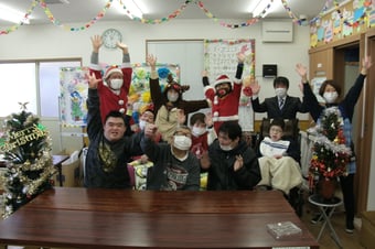 ジョイ・ジョイ・ワーク引野の生活介護では、ふらわあ・ブーケに分かれてクリスマス会を行いました。事前準備で12月に入ってからは、創作活動でクリスマスをモチーフにした飾りを各自制作しクリスマス会に備えた準備をしてきました。