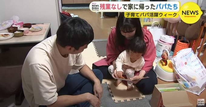 2023年11月30日、アンダンテは、2023年11月3日から11月23日まで実施された「子育てパパ活躍ウィーク」へ参加しました。パパ活躍ウィークとは、働き方改革と従業員の意識改革の両輪で、パパの育児・育児参加を促進し、子育て世帯を社会全体でサポートすることが目的です。子育て応援企業の貢献活動として、期間中にパパ同伴でご来店いただいたご家族に、パンマルシェキュイキュイのパンの食べ放題を10%OFF、そして毎日ノー残業Dayの設定を実施しました。そして、去年から参加しているパパ活躍ウィークですが、アンダンテの取り組み内容が認められ、子育てパパ代表として職員の平井翔さんがRCCテレビ『イマナマ!』の取材を受けました。退勤から密着が始まり、お宅にお邪魔しての取材でしたが、なんと約10分も放送されました。放送の中で平井さんは、「残業がないと子供に早く会えるのでワクワクしながら帰る」と言われています。心にゆとりがあると、おのずと家事に協力できるとの事です。今は女性が自分の能力を発揮し社会進出する時代です。しかし、日頃家事育児は女性に負担が大きく仕事との両立はとても難しいです。今回の平井さんのように、夫婦で家事育児を分かち合い、家族を大切にする、そんな当たり前の社会がしんとうするよう、これからもアンダンテでは家庭と仕事の両立支援に取組んでいきます。