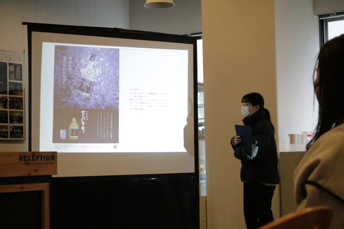 最優秀賞の内山志保さんの作品に対するコンセプトは【「誰でも飲みやすい」「男性だけではない」ということを重視したポスター。購入者は圧倒的に男性が多いと聞いた。