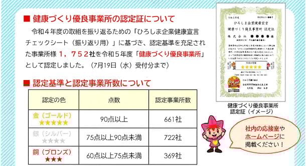 ひろしま企業健康宣言健康づくり優良事業所に認定されました!