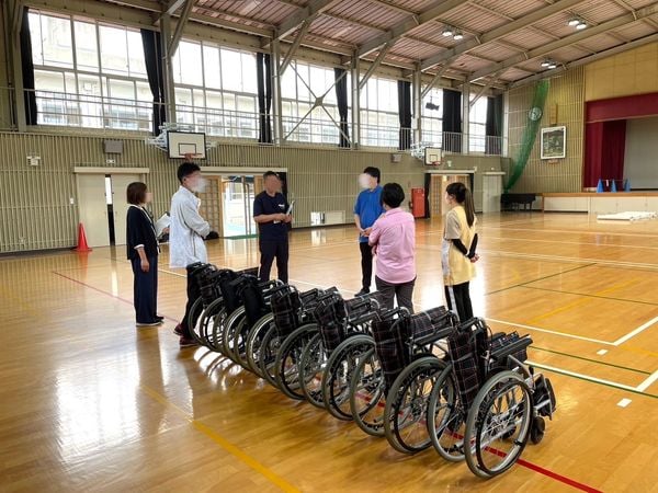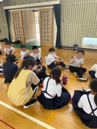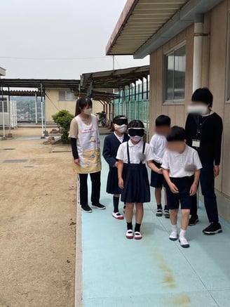 2024年5月22日福山市内の小学校へ行き、車いす体験・アイマスク体験を通して福祉について学ぶ小学生の総合学習のお手伝いをしました。社会福祉協議会の職員さんの「介助の方法を見てください」「声掛けが大事ですよ」との説明を聞き、交代で車いすに乗り介助される側、車いすを押し介助する側の体験をされました。皆さん真剣に取り組まれており「こわかった」「楽しかった」「難しかった」と様々な感想をもたれていました。アイマスク体験も同様に職員さんの「左側、半歩前にたちます」「声掛けが大事です」等の説明を聞き、二人一組で介助する側される側の体験です。体育館から校舎の廊下を歩きます、アイマスク体験をされる方がケガをしない様見守りを担当しました。自分たちで考える事を目的としているため注意や声掛けを必要以上にせず安全に体験していただく事を意識しました。実際、柱に当たりそうになる方もおられ、止めるため手を出す事にはなりましたが、普段の学校生活では体験できない時間を過ごしていただけたと思います。時間の関係でゆっくり感想を聞く事が出来ませんでしたが、今後は福祉について、地域でどの様に活かすことができるのかを考えていかれるそうです。今回の体験を通して、思いやりの心を学ぶ事や、障がいのある方の思いに気付く事が出来た方が多くおられると思います。とても素敵な事だと思います。